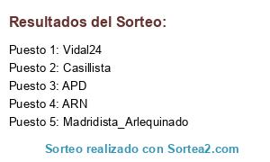 Lista de participantes: ARN, Casillista, Madridista_Arlequinado, Vidal24 (99 participaciones), APD.
