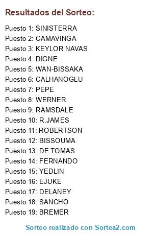 Lista de participantes: KEYLOR NAVAS, RAMSDALE, DIGNE, PEPE, BREMER, ROBERTSON, WAN-BISSAKA, YEDLIN, R.JAMES, BELLINGHAM, FERNANDO, CALHANOGLU, CAMAVINGA, BISSOUMA, DELANEY, EJUKE, DE TOMAS, SANCHO, SINISTERRA, WERNER, SANE.