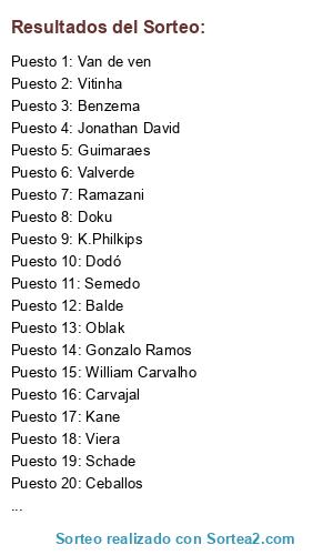 Lista de participantes: Oblak, Livakovic, Balde, Carvajal, Reguilon, Van de ven, Semedo, Dodó, Valverde, Viera, K.Philkips, Vitinha, William Carvalho, Guimaraes, Schade, Ceballos, Benzema, Doku, Jonathan David, Gonzalo Ramos, Ramazani, Kane.