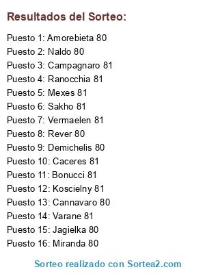 Lista de participantes: Varane 81, Sakho 81, Caceres 81, Ranocchia 81, Bonucci 81, Vermaelen 81, Koscielny 81, Mexes 81, Campagnaro 81, Demichelis 80, Miranda 80, Rever 80, Naldo 80, Amorebieta 80, Jagielka 80, Cannavaro 80.