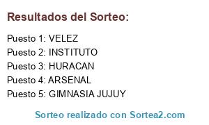 Lista de participantes: ARSENAL, HURACAN, GIMNASIA JUJUY, VELEZ, INSTITUTO.