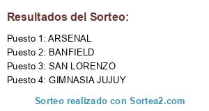 Lista de participantes: BANFIELD, SAN LORENZO, ARSENAL, GIMNASIA JUJUY.