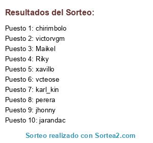Lista de participantes: vcteose, karl_kin, Maikel, Riky, jhonny, perera, chirimbolo, xavillo, jarandac, victorvgm.