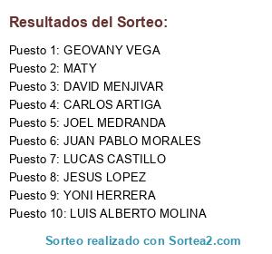 Lista de participantes: LUIS ALBERTO MOLINA, JUAN PABLO MORALES, YONI HERRERA, MATY, DAVID MENJIVAR, LUCAS CASTILLO, JESUS LOPEZ, JOEL MEDRANDA, CARLOS ARTIGA, GEOVANY VEGA.