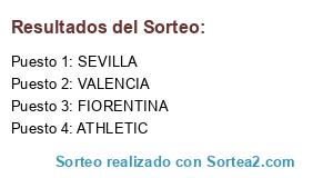 Lista de participantes: SEVILLA, ATHLETIC, VALENCIA, FIORENTINA.