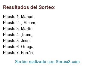 Lista de participantes: Barbara,, Ortega,, Ferrán,, Gala, ,Irene,, Jose,, Lorena, , Marcos, , Miriam,, Martín,, Maripili,, Julia,, Nuria,, Raquel,.