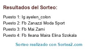 Lista de participantes: Fb Andre Di Pietro, Fb Ileana Maira Elina Szokala, Ig cami.lopez2, Fb Gime Ponce, Ig lauragatti_87, Ig milifernandezf, Ig mylquimicos, Fb Milagros Fernandez, Fb Maria Fernanda Giacoi , Fb Marcela Alejandra Scalzo , Ig gise_j_f, Ig ruthbrugiati, Ig adrimumi, Fb Isabel Molina, Ig yoaprofumati, Ig stellamaris2111, Fb Fabiana Var , Fb Edit Guarda, Ig liligamarra8, Ig gisexarau, Fb Andrea Karina Duarte Oliva , Fb Eve Fernandez, Ig andrea.melchiori, Fb Giselle De Manas , Ig ayelen_colon, Ig agus_gomez33, Fb Mai Zami , Fb Osuna Pali, Ig silviburbuja, Fb Luciana Bogado , Fb Viviana Lxu Benitez , Ig mekkfantini, Fb Marisol Espinosa , Fb Patricia Noemi Brousse , Fb Lucia Bellini , Fb Gioo Simonutti , Fb Sole Pocket , Fb Meli Vazquez , Ig virgi_gamero, Fb Jesyy Anzorena, Ig yaneygomez33, Fb Zanazzi Moda Sport , Fb Virginia Gioria , Ig aylin.yanet, Ig dolcemik, Ig mariela_alejandra_pisani, Ig emilseandreagistas, Ig marcepoletti, Ig solepocket, Fb Liliana Oliva , Fb Mara Della Bianca , Fb Cami Lopez Wolojviansky , Fb Ale Fer, Ig silvinaguerra67, Fb Maru Francisconi , Fb Mili Sanchez, Ig magalaida, Fb Estela Gomez, Fb Monica Patricia Batistela , Ig claudia_oveja, Fb María Rocío Tittarelli , Fb Fiichu Almada , Ig rociovalli, Fb Laura Hernando , Fb Nely Ruiz Abregu , Fb Melisa Pieruccioni , Ig vivianabuiese, Ig gaete_victoria, Fb Aylín Blanco, Fb Fabi Mendoza, Ig valli.vale, Fb Teresita Roman, Ig fenicia_giorgio, Ig matricardimarta, Fb Lucas Milagros Quimicos , Fb Patricia Peretti , Fb Claudia Rios , Fb Cami Carnevalle, Ig andre.pampi, Fb Gaby Hari, Ig andrea.5027, Fb Clau Villanueva, Fb Yanina Goicouria , Fb Carolina Herrera, Fb Ornela Chiparibolo , Ig giselacernotto, Fb Luz Maria Ligori, Fb Sole Pallavidini , Ig soniaale.m, Ig andreadipietro89, Fb Dana Barrios , Ig naaanus, Ig fichu_almada, Fb Virginia Gamero , Fb Yoha Troncozo , Fb Evelín Daglio , Ig antonemolina, Fb Rooh Fadel, Fb Ani Sosa, Ig miilemaitre, Fb Carolina Goncebat , Fb Noe Baranosky , Fb Mekk Fantini , Fb Cami Peralta , Fb Silvia Patricia Sejas, Fb Silvana Visentin, Ig grigromero, Ig cintiasanchez27, Ig benitezpaola53, Ig pipivionnet, Ig giselledemanas, Ig monserrat.acosta_, Fb Vany Barragan, Fb Indiana Gabriela Roverano , Ig spallavidini, Fb Patri Ro , Ig piagentinisilvia, Fb Yamila Moyano, Fb Cristina Acuña , Ig gisegespindola27, Fb Noelia Gimenez, Fb Nati Basile, Ig denucast, Fb Mariana Altuna , Ig melanivazquez_, Ig noebaranosky, Ig valenchuu_g, Fb Andrea Pampiglioni , Ig maru.francisconi.
