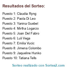 Lista de participantes: Ruben River, Karina Mendiola, Flor Kiriyk, Elisabeth GodMetal, Disalvo Luciana, Marisa Sabato, Ana María Farías, Natalia Maciel, Beto Oropel, Miriam Akd Lombardini, Ivis Barboza, Yami Polimeno, Ale Pety Mdp, Carolina Quinteros, Gonzalo Sebastian Canto, Brenda Paladini, Noemi Maz, CG Claudia Garcia, Amalia Gilardon, Veronica Hernandez Cisnero, Federico Miguel, Pablo Huerto, Karu Torres, Carolina Laborías, Natalia Aranda, Luis Mancini Pietra, Melisa Pietrantonio, Victoria Borgonovo, Dolores Lloria, Stella Biderbost, Floor Giraffa, Ro Urain, Paulina Giordana, Dietetica Naturavida Centro, Carol Ayelen Bardelli, Silvana Rodriguez, Nati Dome, Nélida Esther Chiarrone, Paula Alejan Dra, Nicolás Vallejo Trecek, Sil Gutierrez, Glady Moreno, Sofia Modragon, Nadiia Gaiitan, Verónica Bande, Maria Jimena Caco, Ramon C Adelqui, Noemi Hebe Reginato, Soledad Caamaño, Mazzarella Marcela, Mariana Caamaño, Evelyn Donato, Grace Haller, Raquel Olivero, Gabby Ferreyra, Ana Wolf, Leila Topczylo, Silvia Andrea, Carolina Veronica, Gisela Soledad, Guillermo Perez, Andrea Fabiana de Maio, Rosalia Mucci, Tatiana Tells, AnVer Onica, Graciela Humerez, Maria Laura Giannone, Lucia Gian, Natalia Lorena, Adolfo Alberto, Elsa de General, Carmen Gabriela Navarro, Romina de los Angeles, Andrea F Blanco, Liliana Liss, Maria Belen Ow, Elizabeth Jimenez, Aurora Acosta, Mel Inuchi, Silvana Perez, Anabella Valeria Duttweiler, Florencia Lopez-Reh, Liz Roxana, Mario Libertella, Graciela Canales, Liliana Acosta, Rosa Beatriz, Lucia Acosta, Sergio Cortéz, Erika Lorena, Pame Girotti, Adriana Franco, Ariana B Correa, Claudia Cecilia Rodriguez, Graciela Ponce, Gabriela Giulietti, Nicolas Ramallo, Sofia Luvino, Melisa Stefania Di Paola, Andrea Ferre, Carla Stojan, Laura Burroni, Hector Romero, Silvia Steren, Rosa Brandt, Miguel Barbarich, Julia Gauna, Vanesa Palermo, Natalia Iunda, Marta Marzullo, Amaral Brunna, Micaela Sposito, María Jalil, Cecilia Maria La Grotteria, Paola Salvatierra, Laura Falkowicz, Monica Licenblat, Doña Aimé Noya, Sol Ileana Pastor, Vero Sierra, Rosaura Esther Albanese, Belen Violet, Laura de Palacios, Estela Escobar, Cecilia Luraschi, Angelica Rios, Juan Luraschi, Anabel Mass, Marina Marino, Claudia Marcela Ludueña, Barby Grasso, Cynthia Cejas, Adriana Patricia, Lidia Margarita, Adriana Gazzara, Paula Amendolara, Eliana Ely Costilla, Viviana Pizzorno, Elsa Beatriz Ortelli, Mirtha Logarzo, Rosana Garcia, Laila Vingranovich, America Rosa Godoy, Stella Tedeschi Contino, Grisel Hitoff, Graciela Valdéz, Patricia Naredo, Carito Suar, Carolina Marko, Martin Lopez, Cci Palombo, Maria Belen Maydana, Benny García, Isabel Cardozo, Gaby Leva, Florencia Garcia Escudero, Patricia Beatriz Szy, Alejandro Terrazas, Paula Pellegrino, Claudia Lopez, Maida Martin, Marta Ida Cramer, Alejandra Kostic, Rosa Muller, Alejandra Garbovetsky, Mirta Mastronardi, Elsa Ortelli, Fernando Fuentes, Medina Lala Laura, Abraham Brandt, Jorge S Eula, Yan Carrizo, Laura Lema, Iris Thelma Casati, Maria B. Elena, Celeste Fuga, Cynthia Rodriguez Krebs, Dana Rios, Jose Sandoval, Nancy Arenas, Belen Ponce de Leon, Sabrina Mendiola, Hugo Ogertschnigg, Cesar Deney, Rocio Bl, Adriana Patricia Barraza Slobodianiuk, Cristiann Caruso, Laura Palacioss, Fabiana L. Moreno, Elena Denegri, Marta Susana, Valeria Vacca, Mario Quilian, Susana Martin, Maria Graciela Romeo, Ruben Retamal, Beatriz Barrera, Marta Lidia Lembo Cropanese, Romina Peirone, Graciela Vazquez, Eduardo Alberto, Marula Bazte, Cintia Chinty, María De Lourdes Barreix, Mary Rochy, Antonia Berardi, Martín De Los Santos, Laura Boquete, Estela Rodriguez, Lu Vir, Maria Florencia Melon, Emilia Vucic, Mariana Lucarini, Graciela Goma, Analia Pirula, Paula Avila, Pablo Romero, Amalia Migueles, Taa Mii, Silvia Azurmendi, Lucía Laus, Marcela Ruiz, Ariel Lyardet, Gonzalo Fernández, Horacio MB, Patricia Gonzalez, Maria Ines Ponce, Veronica Summertime, Mercedes Inés Elia, Karina Dipierro, Ana Pereyra, Adriana Ingratta, Humberto Miguel, Mabel Goñi, Yanina Paredes, Marcelo Ignacio Rey, Vicky Parola, Ana Garcia, Iris Manfre, Pato Lazarte, Grace Berti, Mariana Mendiburu, Ruben Franco, Darío Ercoli, L Elizabeth Montenegro, Gabriela del Palacio, Demian Szmulewicz, Maritta Lescano, Noelia Alonso Galindo, Cecilia del Palacio, Gladis Bandeo, Monica Scuderi, Paula Barbarich, Emanuel E. Muiño, Rosana E. Zapata, Martina Crivelli, Brenda Maz, Cinttia Fenzel, Liliana Szuldman, Enrique Diamante, Graciela Filomeno, Maria Cristina Plencovich, Silvia Isabel Lazcano, Carolina Cedron, Yanina Guebel, Sofi Cent, Yamii Alvarez, Graciela Dipasquale, Darío Barboso, Jorgelina Tirigall, Paula Zampaglioni, Graciela Soccal, Pablo Giacomaso, Susana Napoli, Norma Alicia Navarro, Elizabeth Karina Daniele, Laura Bazzurro, Alejandra Canales, Mara Medina, Flavia Ochambela, Noe Cucco, Alejandro Cesar Criscione, Mariela Coudures, Susana Ruiz Diaz, Mariela Delrio, Liliana Tartabini, Luli Vega, Adriana Devesa, Maria Ravani, Elida Molina, Abril D. Wood Jr., Claudia Patricia Bazan, Maria Luraschi, Celeste Gonzalez, Susana Carbonell, Sole Alvarez Bilbao, Adri Caparroz, Anto Ballistreri, Natalia Astorga, Jimena Soledad Ruiz, Brenda Cassanello, Leticia Avoledo, Poli Gallucci, Daniela Frias, Paula Analía Mendoza, Silvia Veccia, Jani Mendez, Betty Maria Beatriz Herrera, Graciela Gonzalez, Claudia Ryng, Angela Puerta, Mercedes Acosta, Lucía Almagro, Noeli Nieto, Noemi Ruiz, Debora Guglielmino, Adriana Tissera, Paula Gabriela Santanni, Alejandra Naccarato, Gala Gargano, Camila Lujan, Lorena Daniela Garbovetsky, Luisina Del Fabro, Mariana Perez, Diana Sisto, Noris Ortiz, Daii Merlo, Morena Picart, Cristina Vega, Alba Karmelic, Gloria ExGana, Ana Donoso, Susana Oviedo, Rosa Londynski, Monica Bengochea, Ramon Gomez, Maria Gabriela Vazquez, Carina Obregon Yasinsky, Jessica Noemi Mazza, Miriam Teresita Molteni Moreira, Betina Horenstein, Giorgina Troiano, Paula Ruiz, Nati Ocanto, Sandra Isaurralde, Patricia Orella, Ang