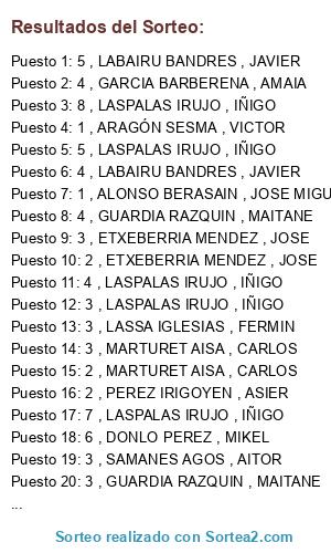 - Puesto 1: 5 , LABAIRU BANDRES , JAVIER