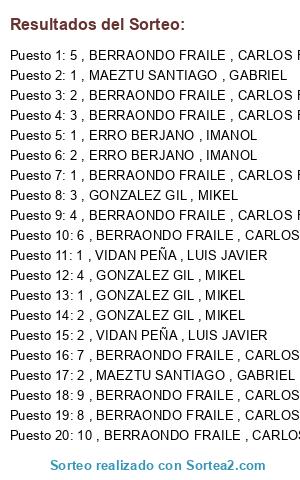 - Puesto 5: 1 , ERRO BERJANO , IMANOL