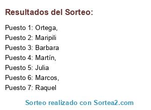 Resultados del sorteo:
