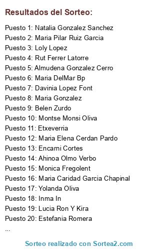 Lista de participantes: Sheila Ramos, Nathy Chouiba, Raquel Dura, Cynthia Vazquez Carrion, Jessy La Patina, Tere Alonso Bejarano, Maite Perez, Yolanda Gonzalez Puebla, Karmen Figaredo Cueli, Rocio Gimeno, Dorita Garcia Sanjulian, Maricuz Sanchez Ocaña Abellan, Loli Valera, Monica Fregolent, Jesusa Chami, Maria DelMar Bp, Lorena Sg, Ana Maria Ortega Marin, Estefania Romera, Estefania Garcia Charavias, Nuria Ginovart, J Antonio Y Barbara, Manualidades Sirena, Cristina Martin Lara, Natalia Ruiz Huertas, Cris Exposito Fouz, Rosi Guerrero Moreno, Sandra Escorial, Marina Ramrz Herndz, Laura Polvorilla, Maria Del Carmen Asins Royo, Noelia Quiros Nombela, Cristina Perez Chacon, Ana Garcia Castillo, Encarni Cortes, Rebeca Zurdo Baena, Nuria Torres Morales, Anna Bea, Monica Valero Garcia, Yolanda Gomez Miguelez, Ana Valero Garcia, Mari Gonzalez, Vanesa Arlanzon Merino, Yolanda Oliva, Lara Galan, Ali Martinez Paz, Marcela Lietor Chinchilla, Merche Alonso Sanchez, Blanca Abejon, Tamara Rama Caceres, Rocio Regueiro, Rosi Velasco Casado, Estefania Peña Ballesteros, Marta Garcia Garcia, Pe SP Pulseras, Conchi Diaz Gonzalez, Mabel Cebrian Jimenez, Inma In, Sandra Hidalgo Corchuelo, Noe Glez Opzo, Esperanza Ruiz, Loly Lopez, Mari Carmen Barranco Jimenez, Carolina Alises Moraleda, Myrinata Monpo, Alba Bañares, Rubia Rubia, Roble Navarro, Montse Monsi Oliva, Julieta Artigas Rueda, Amayi Azpiri, Isabel Jimenez, Piedad Garcia Escamilla, Monica Yanes, Noelia Miguel, Belen de la Piedra, Menchu Manzanares, Mari Carmen Mena, Lucia Oviedo, Penelope Caro, Raquel Tello Valero, Nuria Casado Maña, Haizea Iturriaga, Etxeverria, Alicia Mendo, Almudena Gonzalez Cerro, Sonia Colorado Hermosel, Maria Donaire Saez, Rocio Cabrera, Maite Garcia, Mariam Gm, Maria Del Prado Miguelez Chacon, Carmen Torres, Nieves Rodriguez Garcia, Angela Madridejos, Maria Caridad Garcia Chapinal, Steffi More, Sandra Verdu, Fieltro Felt Feltro Flanel, Marga Garcia, Elena Carrasco Perez, Maria Costa, Belen Zurdo, Sara Fresneda Valenciano, Lolision Hidalgo, Natalia Gonzalez Sanchez, Elena Vazquez Feito, Maria Pilar Ruiz Garcia, Davinia Lopez Font, Yoli Mera Toral, Delia Laura, Maria Gonzalez, Helena Vacreciendo, Ahinoa Olmo Verbo, Marisol Moreno, Carmen Arfe, Mariangeles Robledo Nacarino, Marisol Berrio Jimenez, Ropita de Andres, Carmen Ruiz Lara, Leisa Complementos Hechos A Mano, Monica Arellano, Natali Sarmiento Alvarez-Pedrosa, Lucia Ron Y Kira, Rut Ferrer Latorre, Carmen Martin Baanante, Sonia Sonia Lm Cuenca Alvarez, Bea Gartzi, Maria Elena Cerdan Pardo.