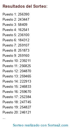 Resultados del sorteo: