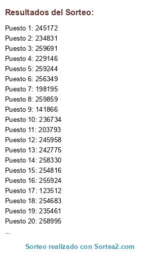 Lista de participantes: Sorteo realizado sobre un fichero que contiene 257 participantes.