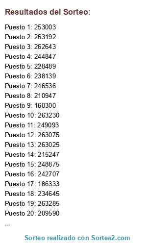 Lista de participantes: Sorteo realizado sobre un fichero que contiene 253 participantes.