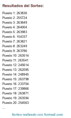 Lista de participantes: Sorteo realizado sobre un fichero que contiene 258 participantes.
