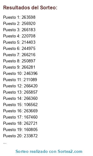 Lista de participantes: Sorteo realizado sobre un fichero que contiene 129 participantes.
