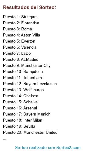 Lista de participantes: Manchester United, Liverpool, FC Barcelona, Roma, Wolfsburgo, Bayern Levekusen, Manchester City, Girondins, Chelsea, Inter Milan, Valencia, Juventus, Hamburgo, Werder Bremen, Schalke, Everton, Arsenal, Real Madrid, Sevilla, Milan, Bayern Munich, Olimpic Lyon, Tottenham, Aston Villa, Oporto, Benfica, Villarreal, Fiorentina, At.Madrid, Stuttgart, Lazio, Sampdoria.