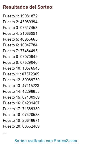 Este sorteo ha sido certificado por Sortea2. Sortea2 garantiza que: