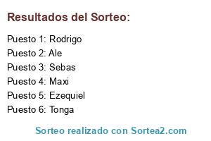 Lista de participantes: Ale, Ezequiel, Maxi, Rodrigo, Tonga, Sebas.