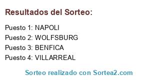 Lista de participantes: VILLARREAL, WOLFSBURG, NAPOLI, BENFICA.