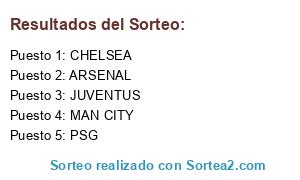 Lista de participantes: MAN CITY, JUVENTUS, ARSENAL, PSG, CHELSEA.