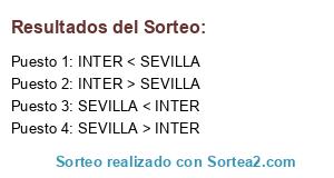 Lista de participantes: INTER > SEVILLA, SEVILLA > INTER, INTER < SEVILLA, SEVILLA < INTER.