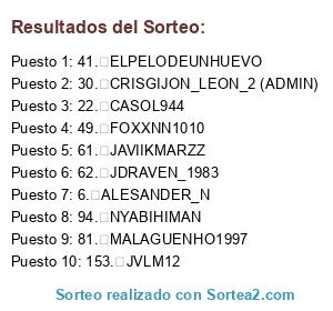 Lista de participantes: 1. ALEXSANFER11 (ADMIN), 2. ABRIXA9, 3. ADRIAN2401, 4. AGALLEGO10 (ADMIN), 5. ALEJANDROBM94, 6. ALESANDER_N, 7. ALEXSERRA1612, 8. ALFFOONSOO, 9. ANDRE2311XD, 10. ANDROIDE1014 (admin), 11. ANTONIOGA_1996, 12. ANTO-990, 13. ANTONIOJURADO_20, 14. BASOCO4, 15. BELLIO44, 16. BENRU 82, 17. BLASCO190, 18. BORJA_FS7, 19. BYSIITO, 20. CANILLEJO, 21. CARLOSXELES12345, 22. CASOL944, 23. CH110INO, 24. CHERCHIRRACING, 25. CHEVITHA14, 26. CHINO-PUEBLA, 27. CHIVI_007, 28. COPYMAR28, 29. CORTECERO11, 30. CRISGIJON_LEON_2 (ADMIN), 31. DANIELO243689, 32. DAVIDCINTAS8, 33. DAVILE07, 34. DELAO1414, 35. DISOLANO26, 36. DJ_DANI04, 37. DRIWERONE, 38. EDU7MORO, 39. EL_KAIMO, 40. EL_PEKI_10, 41. ELPELODEUNHUEVO, 42. ELTITO_JSVYTO, 43. ELXEERIC, 44. ENLOVE181, 45. ERICBLAND, 46. EVER_CFTT, 47. FERNANDO_7_13, 48. FLEKI_96, 49. FOXXNN1010, 50. FRANJIMENEZ6, 51. FURBI28, 52. GABI9989, 53. GINES1996VL, 54. GUILLEMLEVANTE, 55. GUILLESP_GSP, 56. HETI_69 (ADMIN), 57. HUESITO08, 58. ISESTR20, 59. IVANELCALVO, 60. JAVAGARCO, 61. JAVIIKMARZZ, 62. JDRAVEN_1983, 63. JINAMAR20, 64. EJOZELU14, 65. JORDILOIRE1, 66. JORGETEPELOFI, 67. JOSELEUDS, 68. JOSELITOCUBA, 69. JOSEMOD97, 70. JUANBATLE55, 71. JUANKAR5, 72. JUANMA7_RM, 73. JUANPEDRO10, 74. JZARETH, 75. KRAVENHART, 76. LORENMG93, 77. LOSTRESSERDASOS, 78. LUISOCHE, 79. M-RAPT0R, 80. M2106995, 81. MALAGUENHO1997, 82. MANUGL12, 83. MARIOKING, 84. MARKITOOS44, 85. MARTA2790, 86. MICHI_CFTT, 87. NACOR-CHAMORRO, 88. NANDOMAN1905, 89. NANERASREADY033, 90. NEODUKE9, 91. NICO_1088_, 92. NOEL_MORENO, 93. NOQUEDANIUNO, 94. NYABIHIMAN, 95. ORTEGA178, 96. PABLETE_SFC, 97. PABLOBETICO96, 98. PABLODBH, 99. PAULXXX25, 100. PEDRITOSFC93, 101. PERCUCCION, 102. PESPI20, 103. PIKI9300, 104. PIXU-XIII (ADMIN), 105. POL10CRAC, 106. POWERYET, 107. PUREMACHETE08, 108. QUINILLO22, 109. RAULITOO10, 110. RAYKOO666, 111. REVENGE-DIAMOND, 112. ROBECAI6, 113. RUBEN_ALEX_7, 114. RUBENIKE10, 115. RUMANACO1994, 116. SANDROSAMBA10, 117. SANLESITO21, 118. SANTYKY97, 119. SENAA24, 120. SERGIIITO9, 121. SERGIOSH93, 122. SERGIOWD96, 123. SHADOWHARD99, 124. SOGGA-, 125. SOLOZOMBIS1, 126. SPECTRO-_, 127. SSEEER1, 128. STFANO0424, 129. THEZULEEX, 130. TOPITO_WILLIAMS, 131. TWIRLYVIX, 132. TXUWY, 133. ULTRA314, 134. URI14CASTELLER, 135. USE-9, 136. VALDI95, 137. VSDEUSDAD, 138. WALIAJR, 139. WALLTRAPA81, 140. WHITEMIRE, 141. WILD2695, 142. XCRIIS._., 143. XOU86, 144. XRUBIO13, 145. xXKAOSBLACKXX, 146. XXMIGUELITTOXX, 147. YUSTA_RIAZA, 148. YUSTEALK, 149. ZXAVII18, 150. THEJOSKILLER, 151. MERENGOT, 152. TETE13GUERRA, 153. JVLM12, 154. DAVIDRPEREZ13, 155. FOXXTROXX, 156. JORGEPELOTOFI, 157. XKOKO79X, 158. PJ-MORENO.