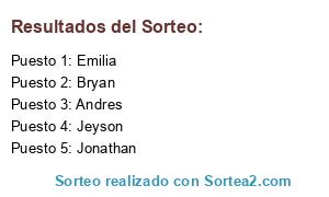 Lista de participantes: Andres, Jonathan, Bryan, Emilia, Jeyson.