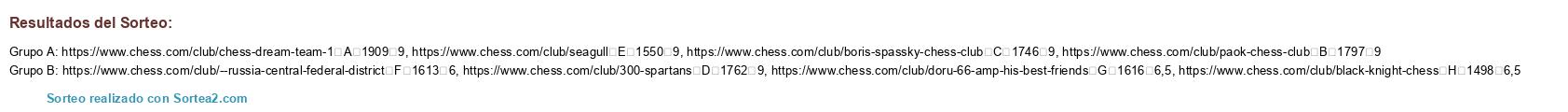 Lista de participantes: https://www.chess.com/club/chess-dream-team-1 A 1909 9, https://www.chess.com/club/paok-chess-club B 1797 9, https://www.chess.com/club/boris-spassky-chess-club C 1746 9, https://www.chess.com/club/300-spartans D 1762 9, https://www.chess.com/club/seagull E 1550 9, https://www.chess.com/club/doru-66-amp-his-best-friends G 1616 6,5, https://www.chess.com/club/black-knight-chess H 1498 6,5, https://www.chess.com/club/--russia-central-federal-district F 1613 6.