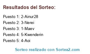 Lista de participantes: 1-Maev, 2-Ainur28, 3-Nerei, 4-Aoi, 5-Kwenderin.