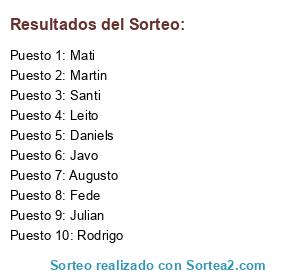 Lista de participantes: Fede, Mati, Leito, Santi, Daniels, Martin, Julian, Javo, Augusto, Rodrigo.