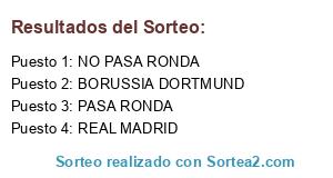 Lista de participantes: BORUSSIA DORTMUND, REAL MADRID, PASA RONDA, NO PASA RONDA.