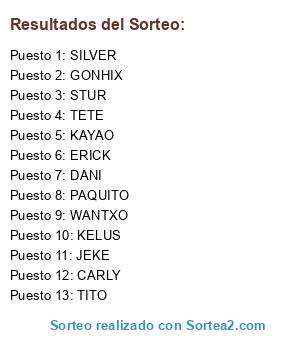 Lista de participantes: ERICK, TETE, KELUS, CARLY, SILVER, STUR, JEKE, PAQUITO, TITO, DANI, WANTXO, KAYAO, GONHIX.