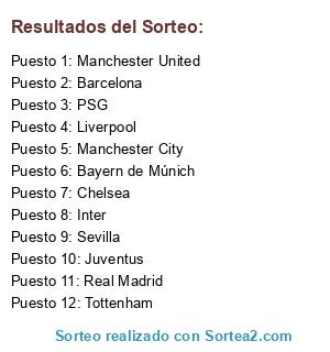 Resultados del sorteo:
