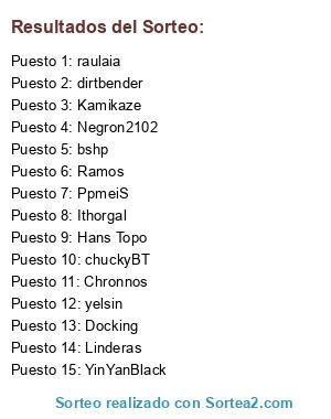 Lista de participantes: Linderas, raulaia, Chronnos, Kamikaze, Ithorgal, Ramos, bshp, Hans Topo, Negron2102, dirtbender, chuckyBT, PpmeiS, Docking, YinYanBlack, yelsin.