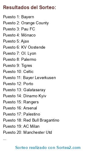 Lista de participantes: PSV Eindhoven, AC Milan, AS Roma, PSG, Sporting, AC Monza, Red Bull Bragantino, Palermo, Bayer Leverkusen, Venezia, Palestino, Pau FC, Lazio, Tigres, Dinamo Kyiv, Atalanta, Mónaco, Orange County, Manchester Utd, Arsenal, FC Barcelona, Newell's Old Boys, Inter Milano, Ajax, Porto, River Plate, Ol. Lyon, Napoli, Galatasaray, KV Oostende, Sukhothai FC, CD Coquimbo Unido, Bayern, Celtic, Rangers, Wolfsburg.