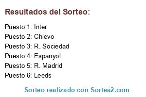 Lista de participantes: R. Sociedad, Espanyol, R. Madrid, Chievo, Inter, Leeds.