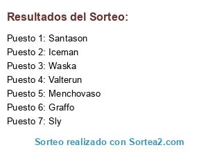 Lista de participantes: Santason, Sly, Valterun, Graffo, Waska, Menchovaso, Iceman.