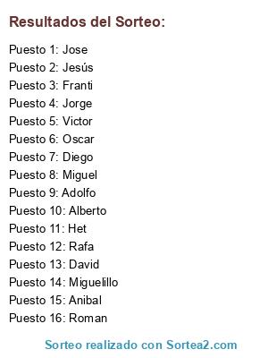 Resultados del sorteo: