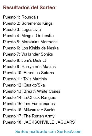 Lista de participantes: Breath White Canes, Emeritus Satans, Harryson`s Maulas, JACKSONVILLE JAGUARS, Jom's District, LeChuck Rangers, Los Funcionarios, Los Kinkis de Neska, Lugoslavia, Milwaukee Sucks, Mingus Orchestra, Moratalaz Mormons, Quakto'Ska, Rounda's, Scremento Kings, The Rotten Army, Toi's Martinis, Wallander Sonics.