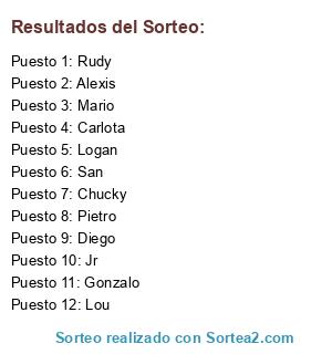 Lista de participantes: Alexis, Carlota, Chucky, Diego, Gonzalo, Jr, Logan, Lou, Mario, Pietro, Rudy, San.