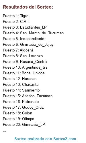 Resultados del sorteo: