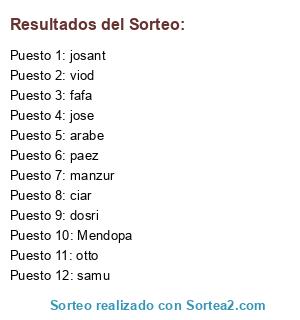 Lista de participantes: Mendopa, jose, dosri, samu, paez, otto, arabe, ciar, viod, josant, fafa, manzur.
