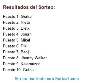 Lista de participantes: Jonan, Nieto, Benji, Kalamazoo, Jhonny Walker, Eletxi, Mikel, Piki, Gorka, Gutzo.