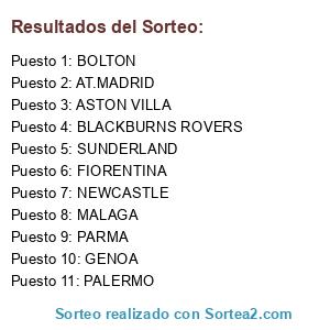 Lista de participantes: AT.MADRID, MALAGA, ASTON VILLA, SUNDERLAND, BLACKBURNS ROVERS, NEWCASTLE, BOLTON, GENOA, PARMA, FIORENTINA, PALERMO.