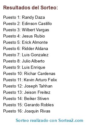Resultados del sorteo: