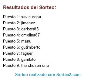 Lista de participantes: carloxs85 , xavieuropa, dmolina87 , manu, gambito , jimenez , the chosen one, faguer , gutimberto.