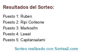 Lista de participantes: Lawal, Ruben, Capitansalami, Markosfm, Ripi Corleone.
