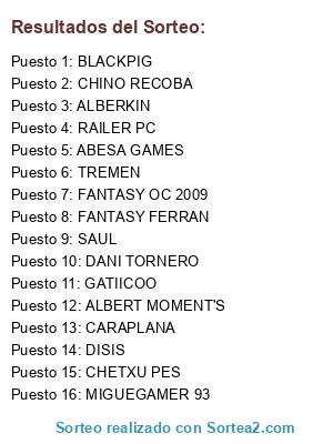 Lista de participantes: ABESA GAMES, ALBERKIN, ALBERT MOMENT'S, BLACKPIG, CARAPLANA, CHETXU PES, CHINO RECOBA, DANI TORNERO, DISIS, FANTASY FERRAN, FANTASY OC 2009, GATIICOO, MIGUEGAMER 93, RAILER PC, SAUL, TREMEN.